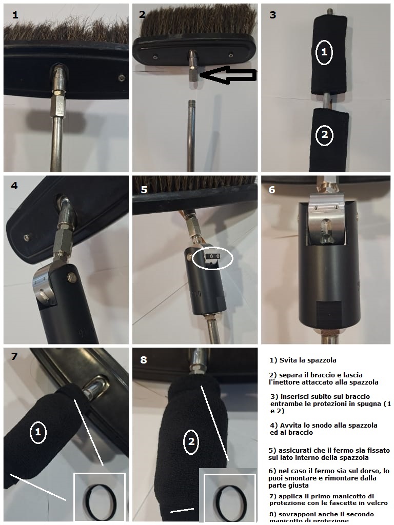 3) Inserisci subito entrambi i manicotti in spugna sul braccio della spazzola